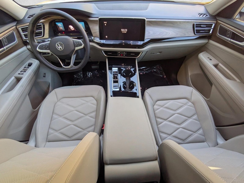 Opal White Pearl,3rd Row Seat,Vw Care,Rubber Mats Kit (2-Row),Retractable Privacy Cover For Cargo Area,Combination Roadside Kit,Lane Keeping Assist,Keyless Start,Rear Spoiler,Cooled Front Seat(S),Shetland Beige; Perforated V-Tex Leatherette Seating Surfaces